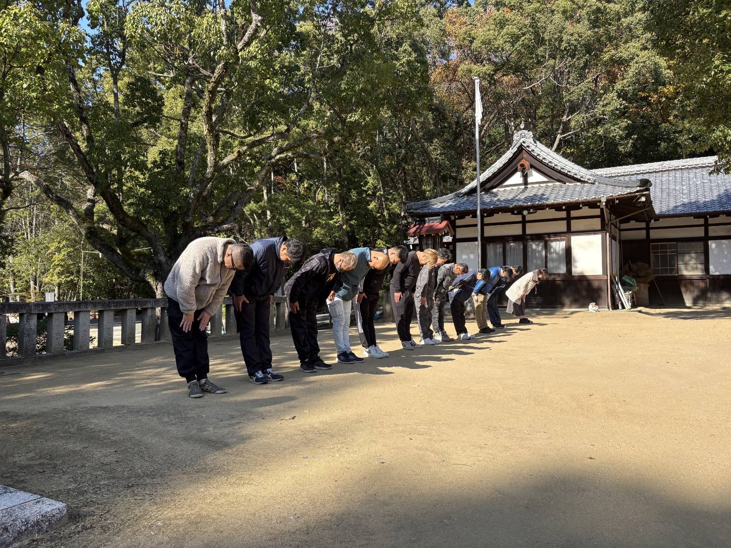 • 岡山縣護國神社にて正式參拜ののち清掃奉仕を行ふ。